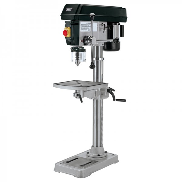 12 speed bench drill with a 20mm drilling capacity. Ideal for automotive and maintenance workshops. The square table is fitted with a smoothly operated rack and pinion mechanism for easy adjustment. Fitted with a No-Volt safety release switch, depth stop and chuck guard. Manufactured with a steel motor casing and lockable pulley cover. Supplied with a BS approved non-rewireable moulded plug and 1.8m (approx.) cable.