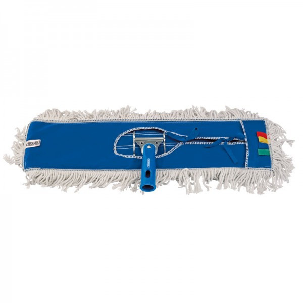 Dust mop frame complete with cotton mop cover, suitable for dry use on hardwood, laminate and tiled floors. The covers have colour-coding tabs to easily identify usage. Easily removed and totally re-washable. Replacement covers available: Stock No. 02090. Part of the One-Handle system. Uses handle Stock No. 02086. Display packed.