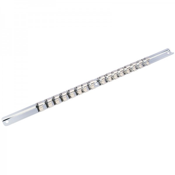 Socket retaining bars which can be wall mounted or used loose. Manufactured from carbon steel hardened and tempered with a polished finish. Clips made from nickel plated spring steel.