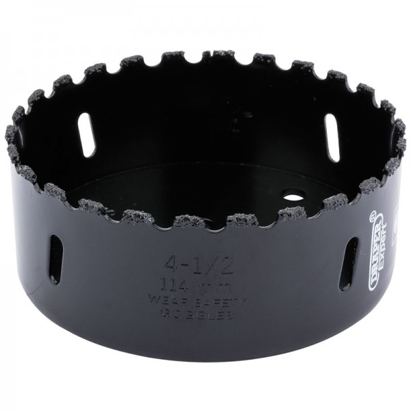 Expert Quality, tungsten carbide grit hole saws perfect for electricians, plumbers and for general use. Ideal when drilling masonry, tiles, aerated blocks etc. Manufactured from high quality steel with a welded tungsten carbide grit rim. Maximum cutting depth 35mm. Display packed.