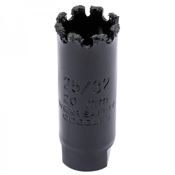 Expert Quality, tungsten carbide grit hole saws perfect for electricians, plumbers and for general use. Ideal when drilling masonry, tiles, aerated blocks etc. Manufactured from high quality steel with a welded tungsten carbide grit rim. Maximum cutting depth 35mm. Display packed.