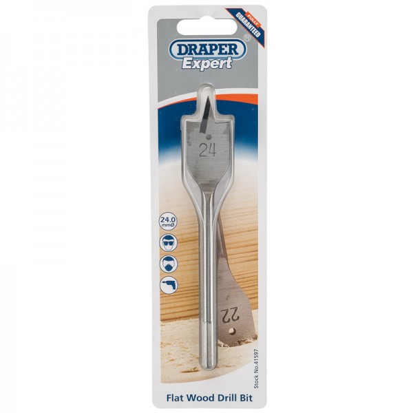 Flat wood drill bits manufactured from hardened and tempered carbon steel. Display packed.